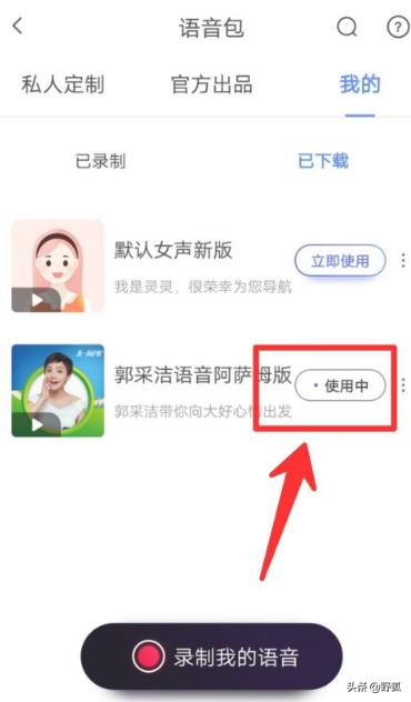 5.在我的语音包里可以看到这个语音包处于使用中,可以去导航里试试这个语音导航吧!