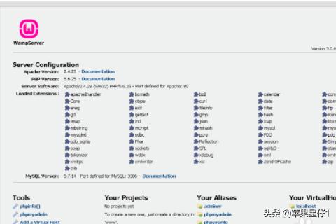 14、使用浏览器打开http://localhost可以访问wampserver的主界面。